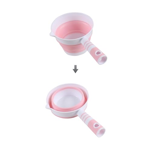 4UBonLife Vikbar Vattenspade, Hopfällbar Vattenslev, Vikbar Badsked Sked Vattensked med Handtag, Silikon och Plast, Platsbesparande för Kök Badrum, Rosa