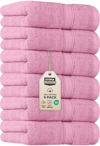 Utopia Towels - [6 paket] Premium handdukssats, (41 x 71 CM) 100% ringspunnen bomull, ultramjuka och högabsorberande handdukar för badrum, gym, dusch, hotell och spa (rosa).
