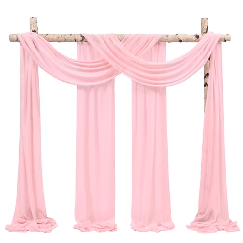 Showgeous bröllopsbåge draperityg 2 paneler 28 tum x 20 fot rosa chiffong tyg draperi bröllop båge draperier chiffong genomskinlig bakgrund gardiner för berså bröllop valv ceremoni tak swag