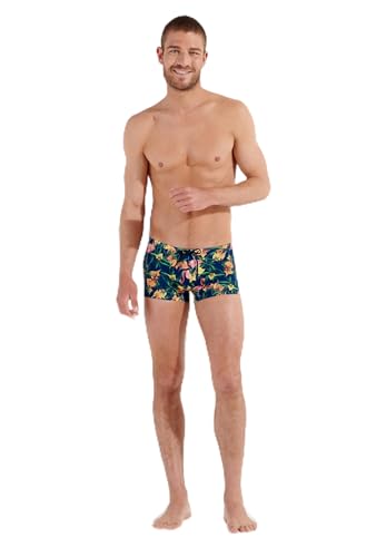 HOM Flamingo badbyxor, Flamländska rosa tryck marin bakgrund, XL