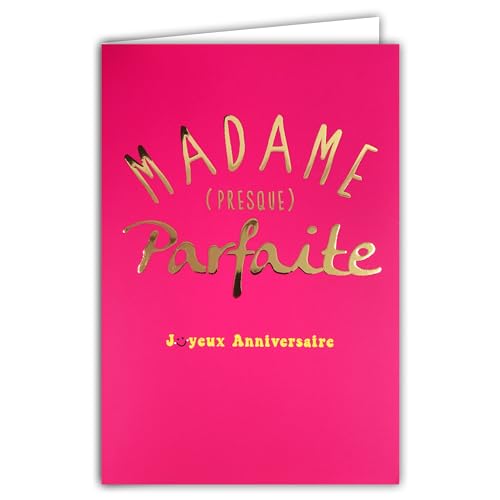 AFIE 69-9052 Glad födelsedagskort MADAME nästan perfekt glänsande guldtext på rosa bakgrund för kvinnor + kuvert 12 x 17,5 cm - kreativt tryck tillverkat i Frankrike