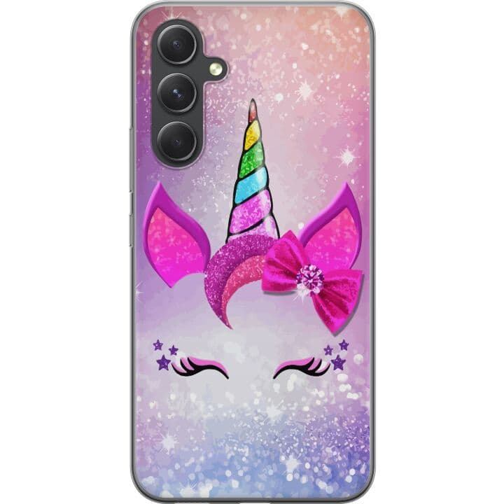 Kompatibelt Mobilskal till Samsung Galaxy S24 FE Minimalistiskt enhörningsansikte med regnbågshorn på rosa bakgrund