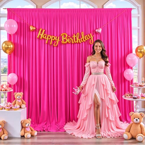 10 fot x 10 fot het rosa bakgrund gardin för fester fuchsia skrynkelfri bakgrund draperier paneler för baby shower födelsedag fotografi polyester tyg bakgrundsdekoration