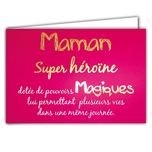 Afie 69-5103 kort för en MAMAN superhjältinna med magiska guldord, glänsande rosa bakgrund, levereras med kuvert; stängd kortstorlek 17 x 11,5 cm;