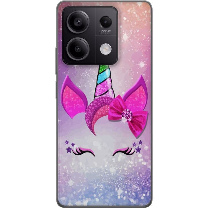 Kompatibelt Mobilskal till Xiaomi Redmi Note 13 Minimalistiskt enhörningsansikte med regnbågshorn på rosa bakgrund