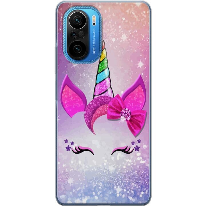 Kompatibelt Mobilskal till Xiaomi Poco F3 Minimalistiskt enhörningsansikte med regnbågshorn på rosa bakgrund