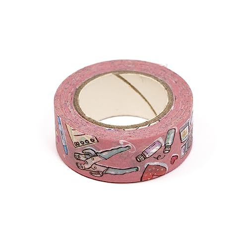 Craftelier - Tape Washi Tape Stämplade Scrapbooking - Dekorera dagordningar, Album, Hantverk eller Kort | Stil Verktyg Ritade på Rosa Bakgrund | Mätningar: 1,5 cm x 10 m