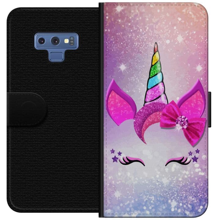Kompatibelt Plånboksfodral till Samsung Galaxy Note9 Minimalistiskt enhörningsansikte med regnbågshorn på rosa bakgrund