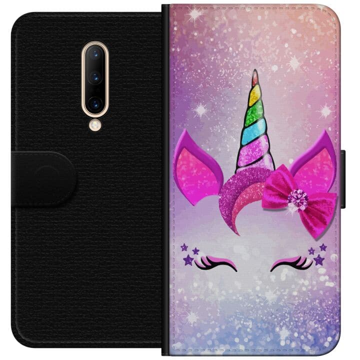 Kompatibelt Plånboksfodral till OnePlus 7 Pro Minimalistiskt enhörningsansikte med regnbågshorn på rosa bakgrund