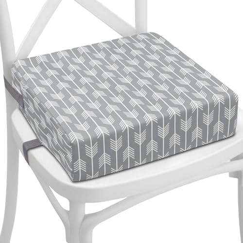 Barnstol förhöjningskudde Sittförhöjare för barn - 33x33x8 cm cm Skumfyllning Avtagbart och tvättbart överdrag Rosa Bekvämt stöd Vid matbordet pilar på grå bakgrund