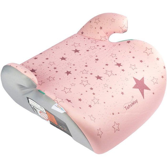 Tataway Bilbarnstol förstärkare i-Size ECE R129/03 barn 125-150 cm, stjärnmönster på rosa bakgrund