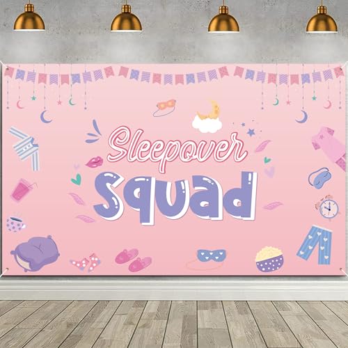 UNIIDECO Sleepover party banderoll bakgrund, rosa och lila, 183 x 112 cm, perfekt för flickors födelsedag och slummer festdekorationer