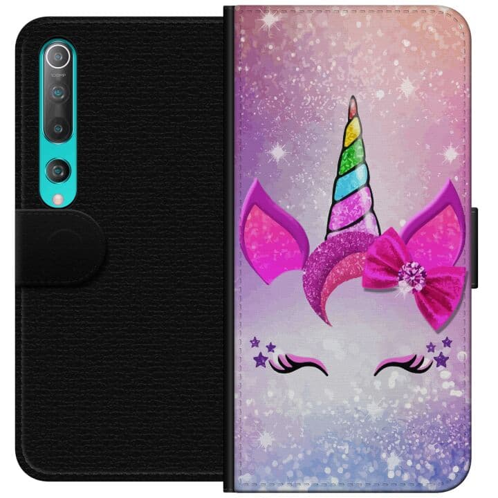 Kompatibelt Plånboksfodral till Xiaomi Mi 10 5G Minimalistiskt enhörningsansikte med regnbågshorn på rosa bakgrund