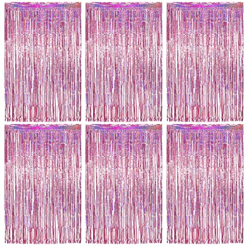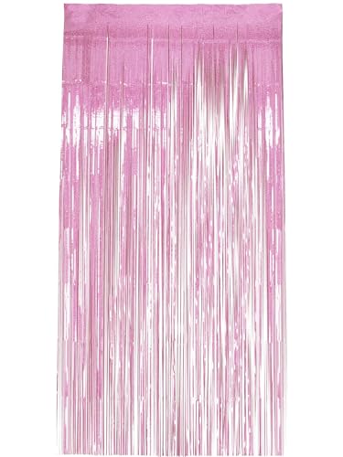 O-Kinee Fransar metallgardin, födelsedag rosa laserfestgardin, glänsande aluminium skimmergardiner, bakgrund fönsterdekoration vägg för födelsedagsfest (1 m x 2 m)