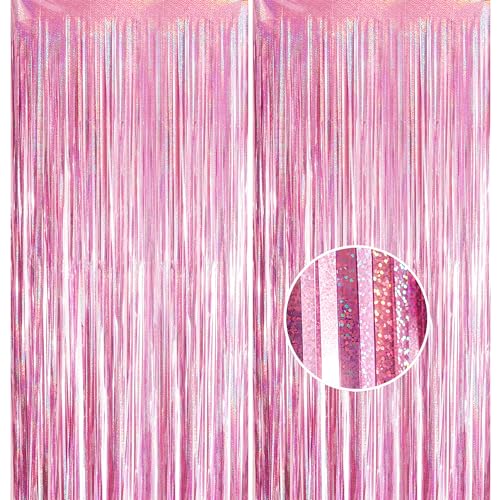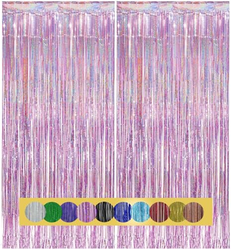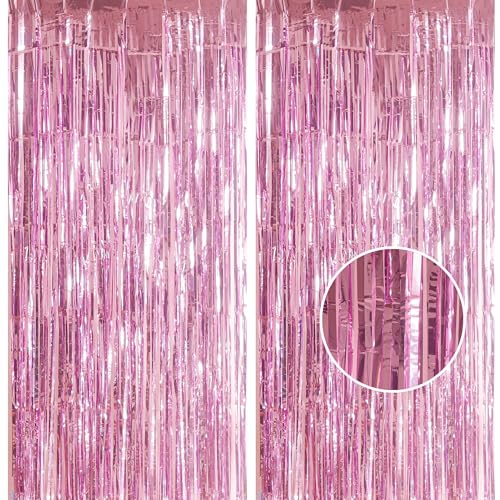 2 Rosa Skimmer Gardiner för Födelsedag, Frisör Folie Fest Flisor Bakgrund, Metalliska Flisor, Folie Fransar