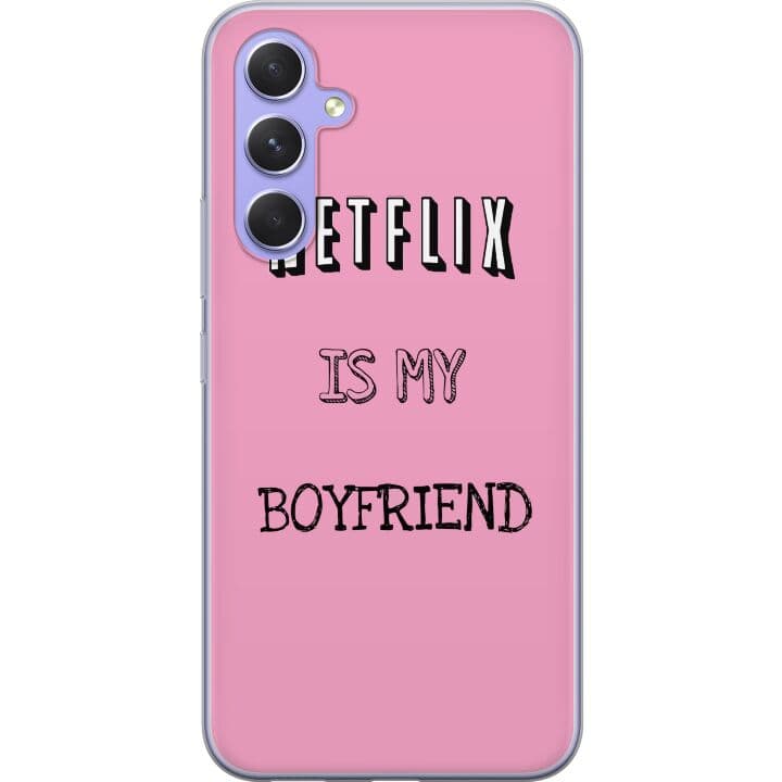 Kompatibelt Mobilskal till Samsung Galaxy A54 Minimalistisk typografi med text på rosa bakgrund i trendig popkulturell stil