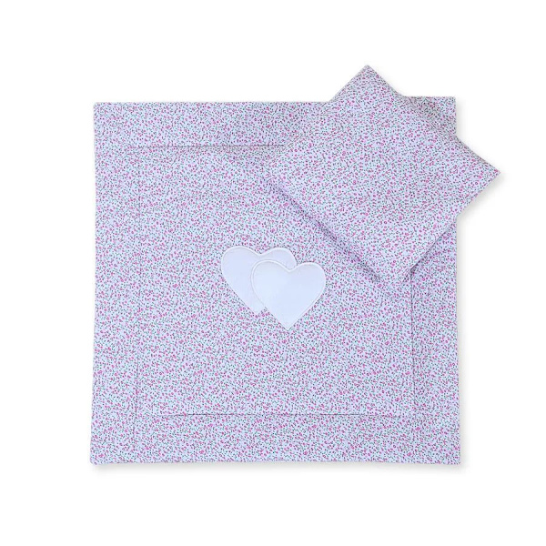 Sängkläder för spädbarn med fyllning, täcke och kudde - Hjärtan på rosa bakgrund från Bobono