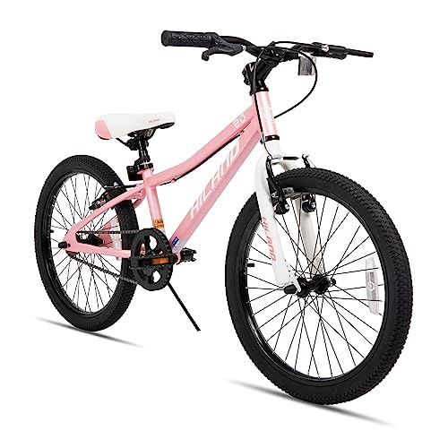 Hiland Climber 20 tum barncykel för pojkar och flickor i åldrarna 7, 8, 9, 10, 11, 12, 13, 14 och 15 år, barncyklar med V-broms, rosa