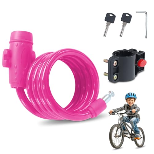Cykellås barn, PVC-beläggning, barncykel lås vattentät och rostfri, cykellås barn med nyckel, lämplig för cyklar, skateboards etc (rosa)