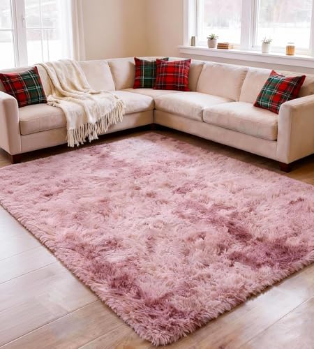 Rohatim Matta med lång lugg för vardagsrum, supermjuk, lurvig, fluffig, mjuk sovrumsmatta/barnmatta (rosa/lila, 160 x 230 cm)