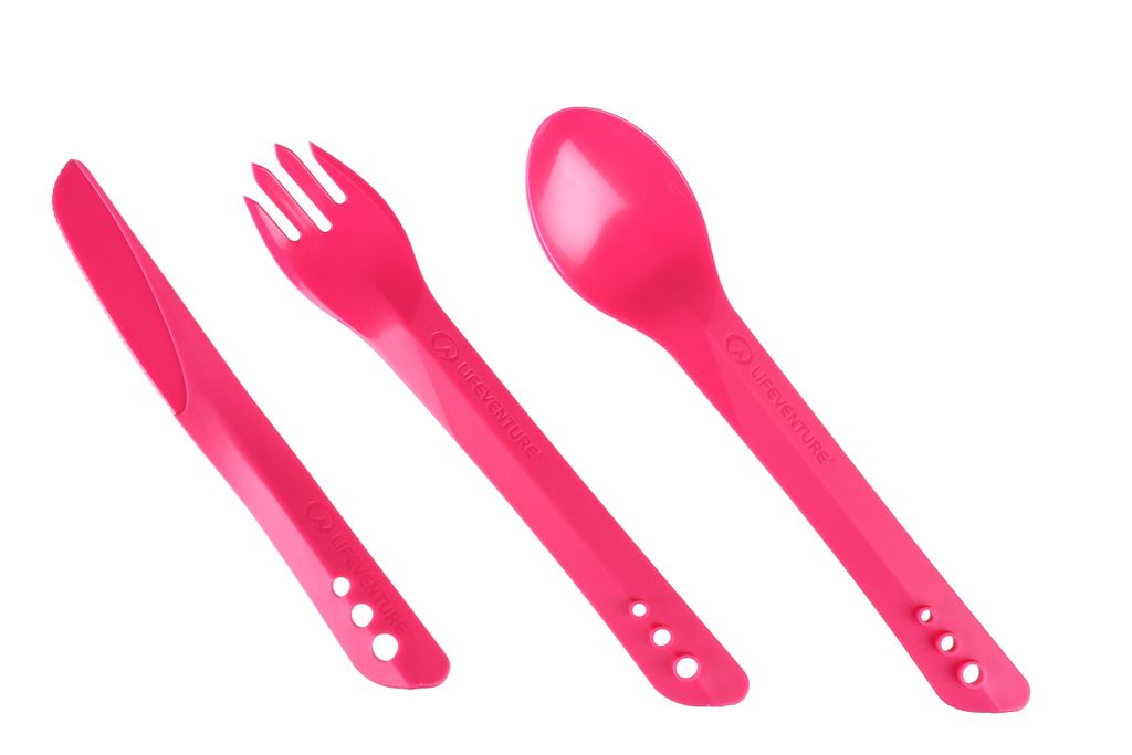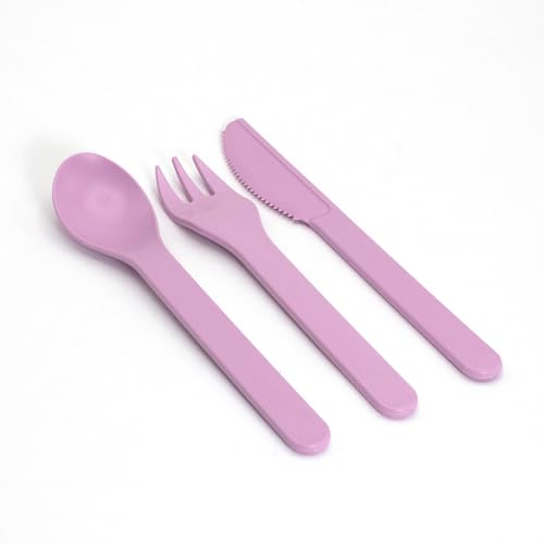 Ekologisk bestick-set, plastbestick 54 delar, 18 stycken knivar, gafflar, skedar, hållbar och stabil, rosa, RPET – tillverkad av återvunnen plast