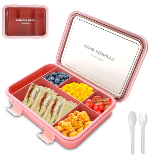 Bugucat Bento lunchlåda 1450 ml, 2-i-1 stapelbar lunchlåda för vuxna barn med bestick, läckagesäkra mellanmålslådor med fack för skola kontor camping, mikrovågsugn och diskmaskinsäker, rosa