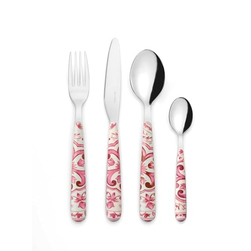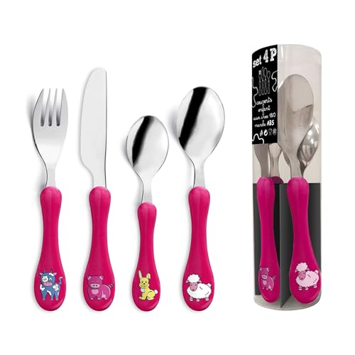 AMEFA Rör med 4 bestick för barn - barn - 18/0 rostfritt stål, glänsande finish - fuchsia rosa