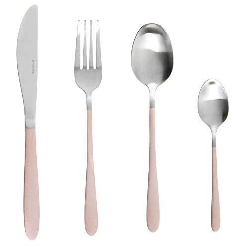Salter BW08024C Champagne 16 delar bestickset – rostfritt stål bestick, servis för 4 platsinställningar, rosa metalliskt satinfinishhandtag, inkluderar gafflar, knivar, teskedar och matskedar