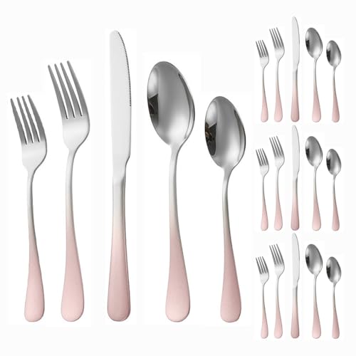 Förtjockad Lutning Färg Handtag Kök Rostfritt Stål Bestick Porslin Bestick Set Biff Kniv Gaffel Sked Tesked (Gradient rosa silver,20 stycken)
