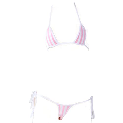 Anime Underkläder Randig Micro Bikini Kawaii Baddräkt Japansk BH och Trosa Set Söt Baddräkt Sexig Cosplay Outfit, Rosa, XS-XL