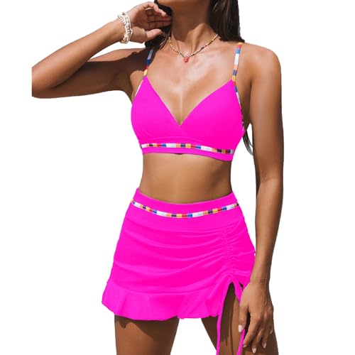 OUSIMEN Bikini baddräkt för kvinnor set sexig baddräkt badmode hög midja färgblock tvådelad dragsko baddräkter bikinis för kvinnor, ROSA, XXL