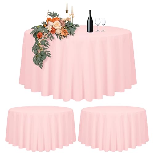 2-pack rosa rund bordsduk 305 cm diameter, runt bordsskydd för Ø150-240 cm bord, polyester vattentät tvättbar rund stor bordsduk för bröllopsfest buffé camping restaurang (120 tum)