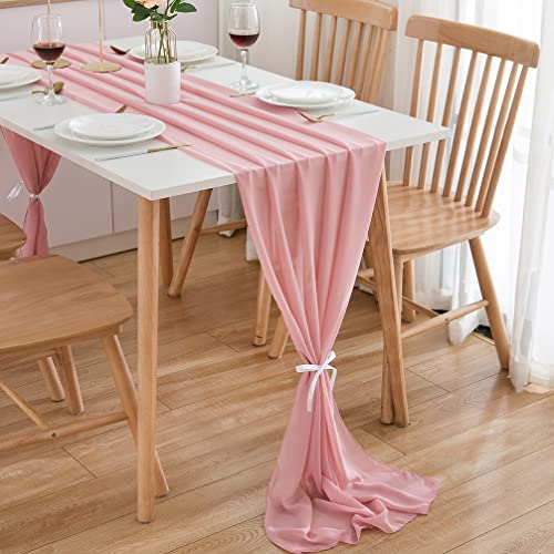 CHUQING Bordslöpare rosa 3 m chiffong rosa bröllop dekorativt bordsband av tyg gammalrosa bordsdekoration för födelsedagar och bröllop