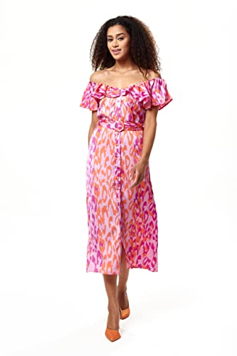 Liquorish midjediklänning för kvinnor med axelärmar i ljusrosa djurtryck bröllop, Rosa, 38 SE
