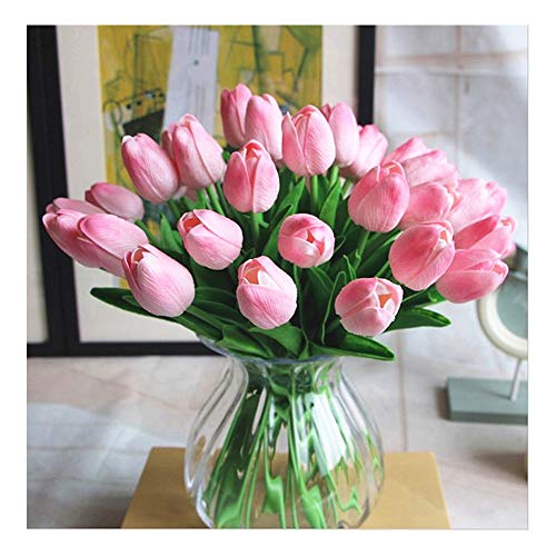 SHINE-CO LIGHTING Konstgjorda tulpaner, 20 st, känns som äkta tulpaner, tulpaner i PU-material, blomsterarrangemang, buketter, dekoration för hem, kontor och bröllop (rosa)