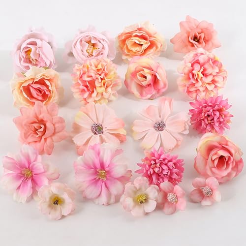 20 st konstgjorda blommor, konstgjorda blomhuvuden, falska minisilkesblommor för heminredning, bröllop (rosa)