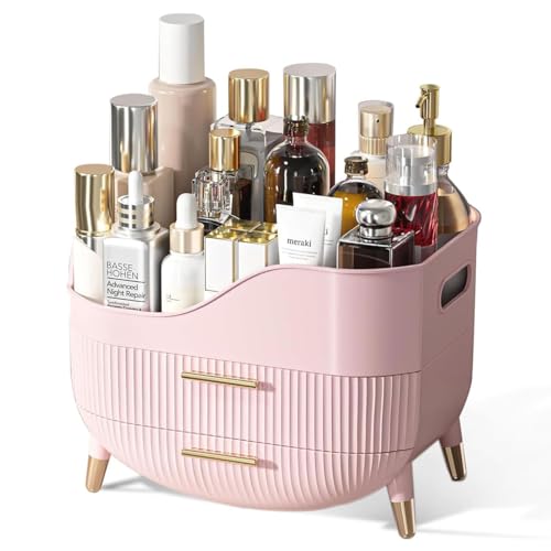 SIOOUI Sminkförvaring, hudvårdsorganisatör för sminkbord, bärbart kosmetiskt visningsfodral, makeupcaddy för sovsal, badrum, byrå kosmetisk förvaringslåda (rosa)