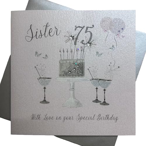 Happy 75th Birthday kort syster champagneglas rosa rosor av vita bomullskort SS42-S75