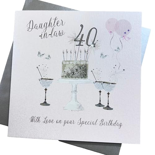 Grattis på 40-årsdagen kort svärdotter champagneglas rosa rosor av vita bomullskort SS42-DIL40, designen kan variera