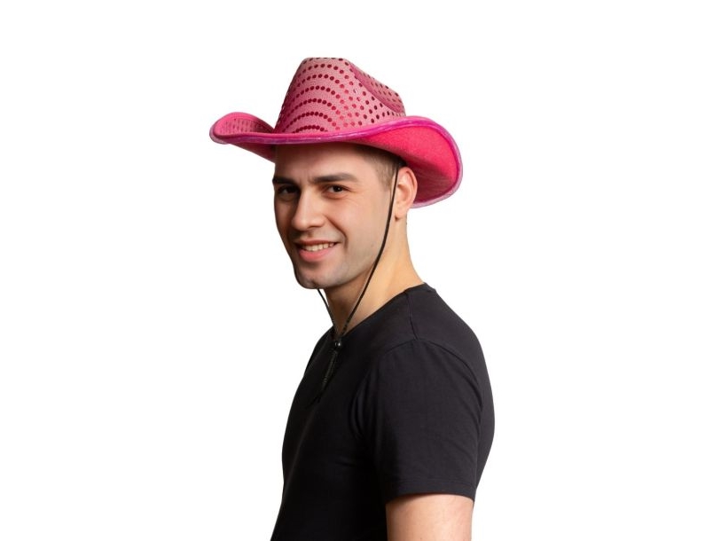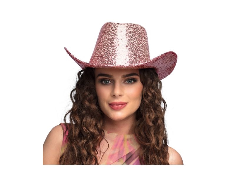 Rosa cowboyhatt med paljetter