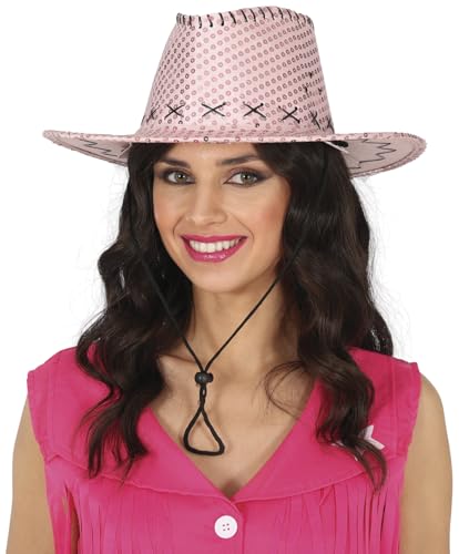 FIESTAS GUIRCA | Cowboyhatt med paljetter (en storlek) - Kostymtillbehör för cowboyfester och svensexor - perfekt för vuxna unisex, rosa