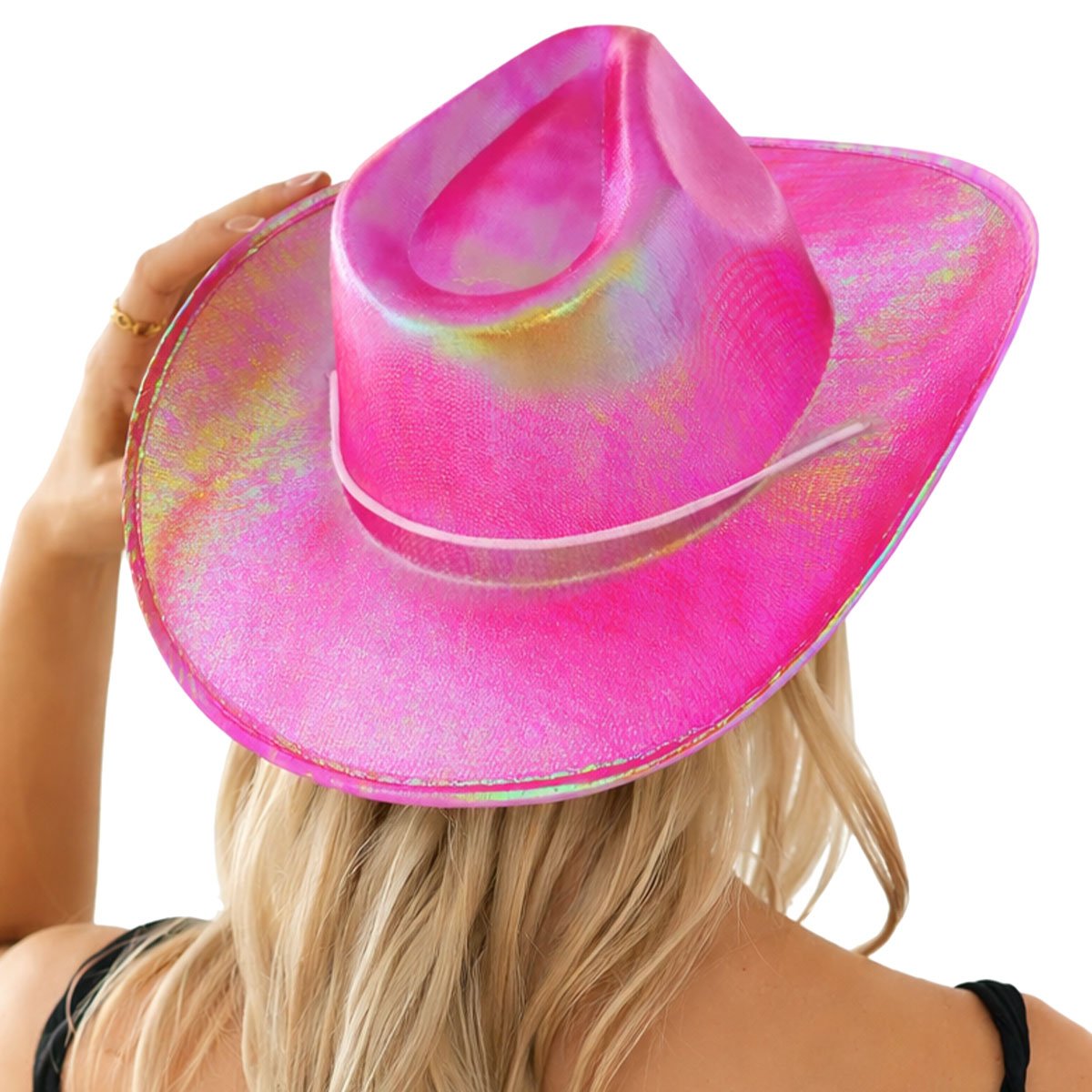 Cowboyhatt med Fransar – Holografisk Rosa