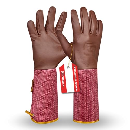 Gebol Damascena | 1 par | Storlek M (Gr 8) | Roshandske | äkta läder med taggskydd | robust trädgårdshandske | mjukt getläder för maximal rörelsefrihet | för kvinnor | brun, rosa