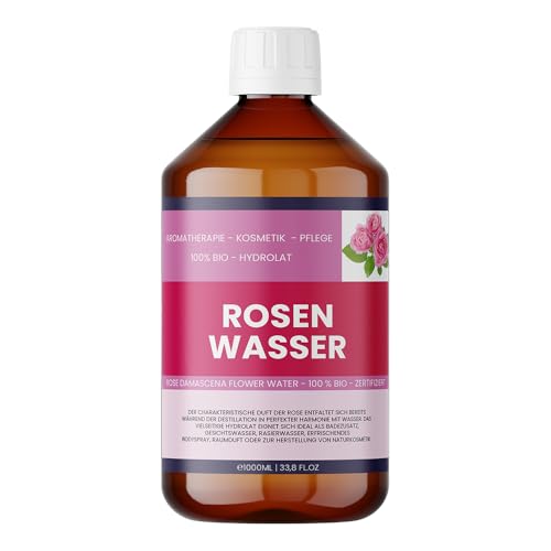 Ekologiskt rosvatten – 1 000 ml rosa Damascena Flower Water | Naturlig hydrolat utan alkohol | För ansikte, hår och gör-det-själv-kosmetika | Vegan och utan tillsatser – ekologiskt ros vatten