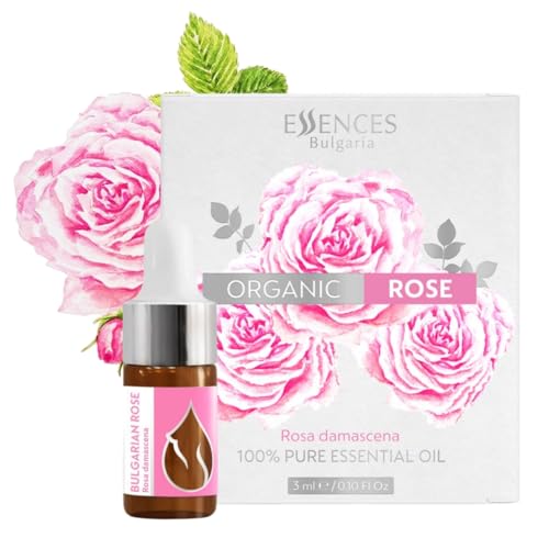 Essences Bulgaria Ekologisk Ros Eterisk Olja 3ml | Rosa Damascena | 100% Ren och Naturlig | Outspädd | Terapeutisk betyg | Familjeägd gård | Ångdestillerad | Icke-GMO | Vegansk