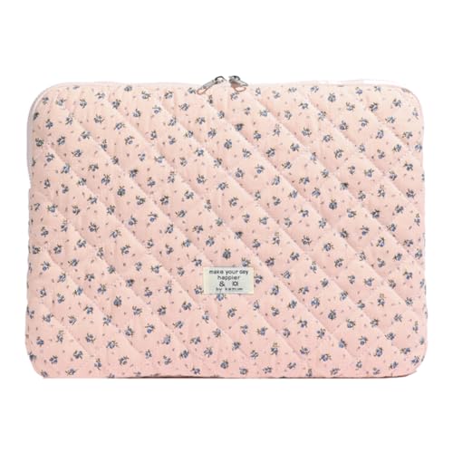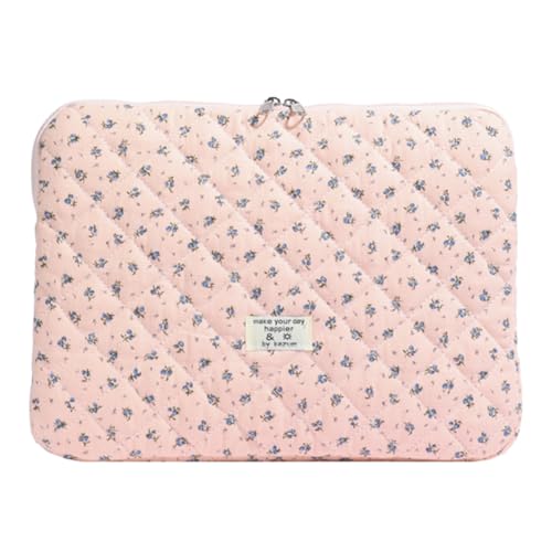 CRGANGZY Datorfodral med blommigt tryck, quiltat skyddsfodral för bärbar dator, passar en dator/surfplatta på 11–15 tum (rosa 3)