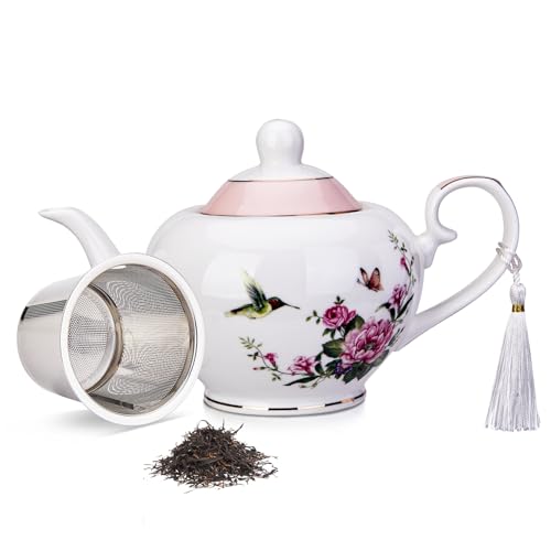 London Boutique tekanna med infusionsenhet – te tot infusioner för lösa te- eller tepåsar – 700 ml kapacitet perfekt 2 kopp tekanna – enkelt att greppa tekannor (ros fågel fjäril rosa)