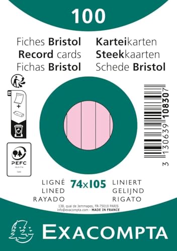 Exacompta - Ref. 10830SE - kartong med 40 förpackningar med 100 operforerade linjerade bristol-kort - under film - format 74 x 105 mm - rosa färg