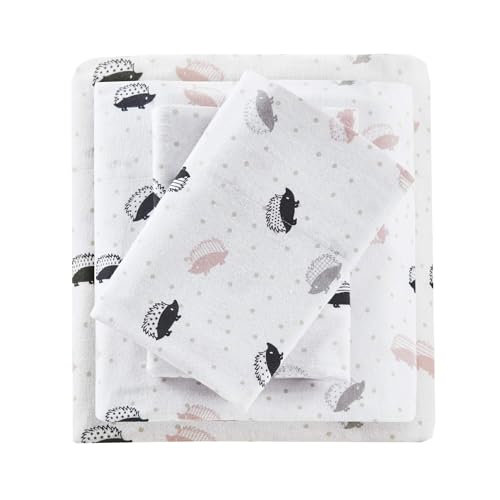 Intelligent Design Mysig mjuk 100% bomull flanell tryck djur stjärnor söt varm, ultramjuk kallt väder lakan set sängkläder, full, rosa/grå igelkottar 4 delar