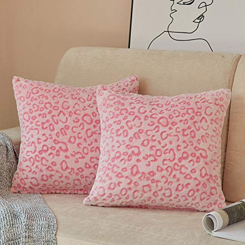 FY FIBER HOUSE Leopardtryck flanell fleece kuddfodral kuddfodral för bäddsoffa, 2-pack, 45 x 45 cm, rosa leopard